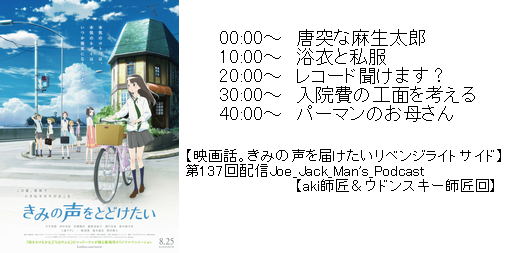 【映画話。きみの声を届けたいリベンジライトサイド】第137回配信Joe_Jack_Man's_Podcast 【aki師匠&ウドンスキー師匠回】